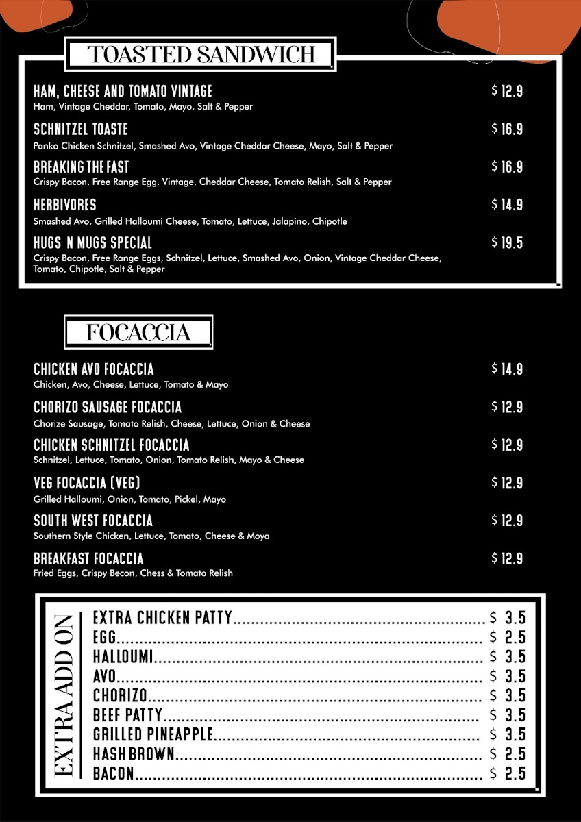 Hugs N Mugs cafe Menu